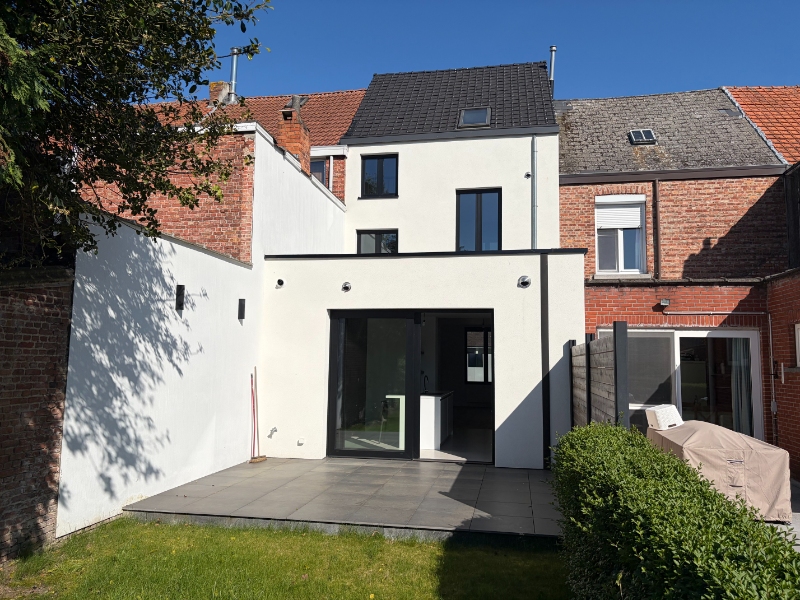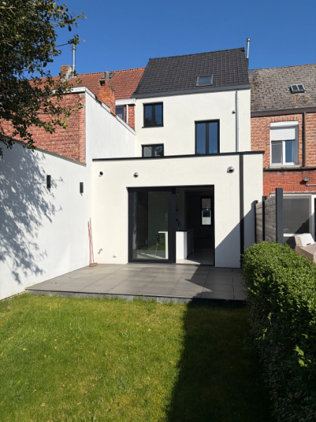 Dit karaktervol eigendom werd volledig gerenoveerd in 2025 met behoud van enkele authentieke elementen : Nieuw dak, nieuwe ramen, nieuwe CV brander, nutsleidingen, keuken, badkamer, ..., .  Aansluiting zonnepanelen voorzien.  Dit huis is volledig instapklaar en voorzien van alle hedendaagse comfort!!  Zeer goede EPC score (Label B) en de keuring van de elektriciteit is volledig conform!  De woning is asbestveilig.  Kelder aanwezig.  Het GLVL is ingedeeld in een inkomhall met stalen glazen binnendeur (wordt nog geplaatst), een apart hangtoilet, een woonkamer op parket en een luxueus nieuw ingerichte leefkeuken.  Op de 1eV bevinden zich een hall, een nieuw en modern ingerichte badkamer en de grote slaapkamer (master); op de 2eV een hall en nog 2 ruime slaapkamers.  Er is een zongerichte, diepe achtertuin en een nieuw aangelegd terras met LED-verlichting, stopcontact en buitenkraan.