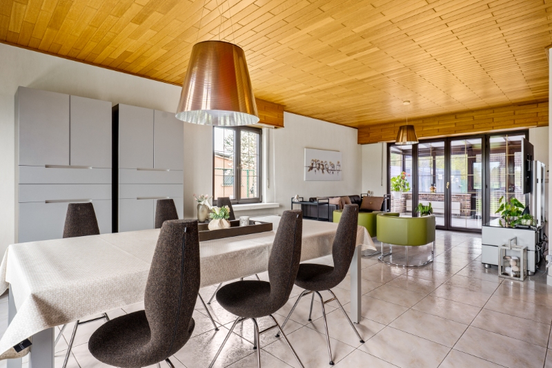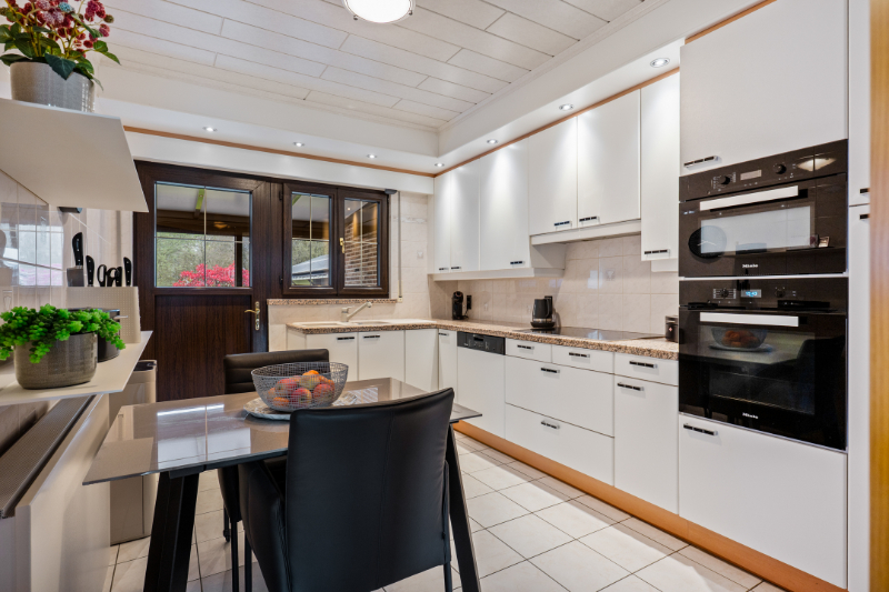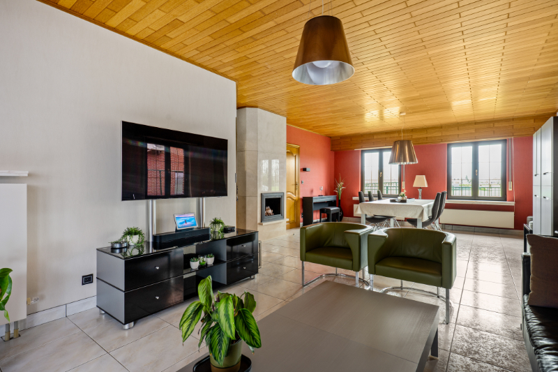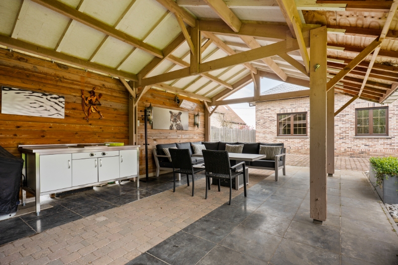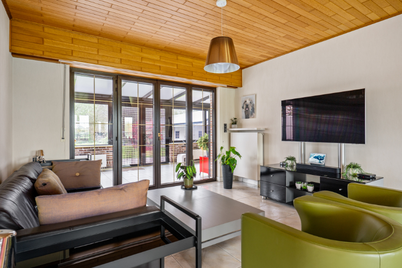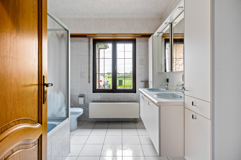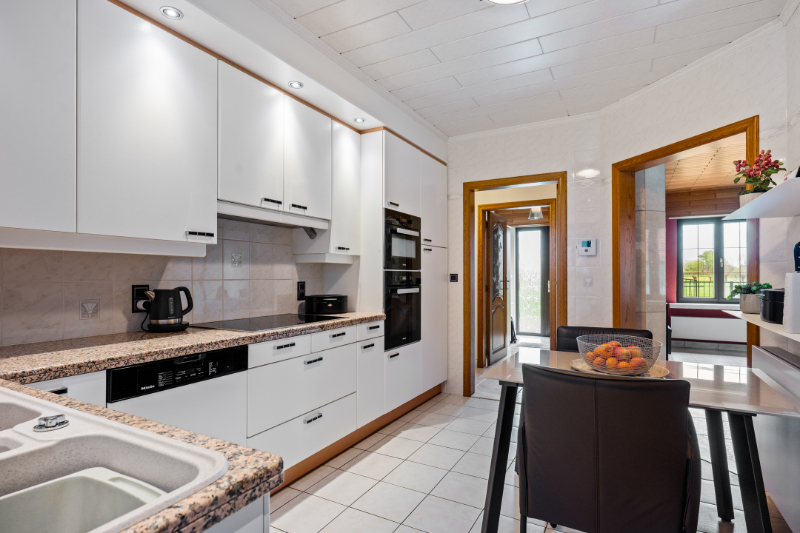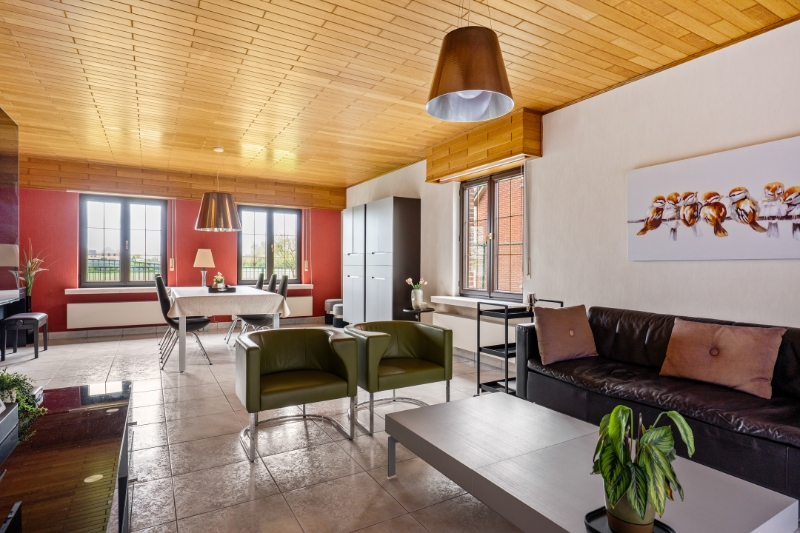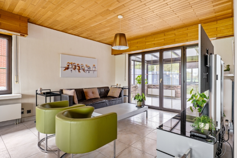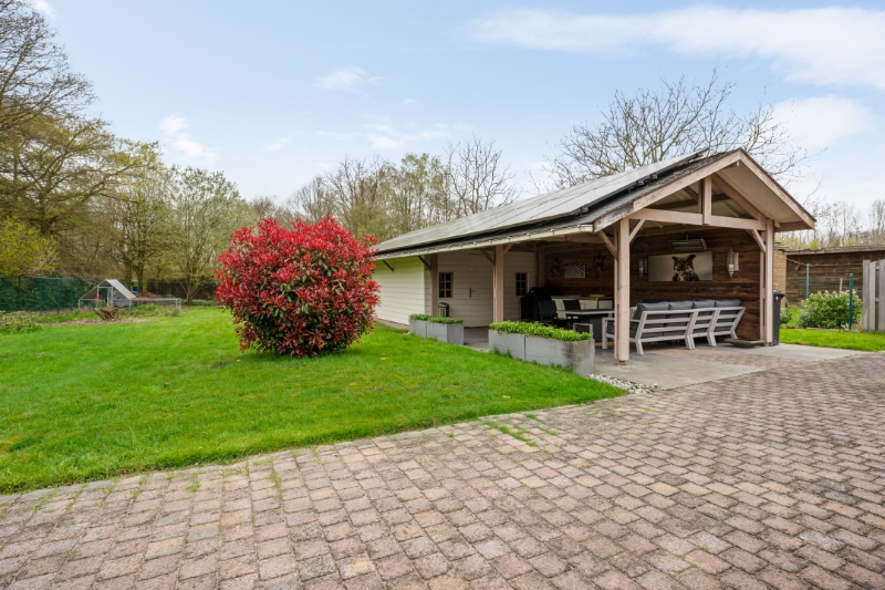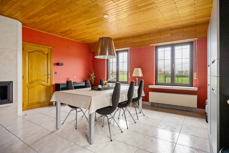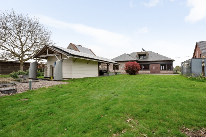 Dit eigendom is gelegen op een unieke locatie te midden van de velden met een rustgevend en landelijk uitzicht. Het eigendom werd volledig aangepast als 2-woonst (kangoeroewoning) voor een inwonende ouder. Op het gelijkvloers is de indeling als volgt : inkomhall, apart toilet, ruime woonkamer, volledig ingerichte keuken, ruime veranda met zicht op tuin (airco en zonnescreens voorzien), nachthall, berging met ingemaakte kast, 3 slaapkamers, volledig ingerichte badkamer, berging/wasplaats, garage (thans in gebruik als berging en tweede inkom voor de ingerichte studio. Via de garage is er een trap (tevens automatische elektrische stoellift voorzien) naar de waanzinnig ingerichte en afgewerkte studio die bestaat uit : hall, berging, ingerichte douchekamer, een slaapkamer, een gezellige woonkamer met ingemaakte kasten en een luxueus ingerichte keuken met kookeiland. Vanuit deze leefruimte heb je aan de ene kant een uniek verzicht over de velden. Er is tevens een overdekt terras met zicht op de tuin. In de mooie achtertuin is er een zéér ruime tuinberging voorzien met een ruim overdekt terras met buitenkeuken en lounge set (in de prijs inbegrepen). Indien de garage terug als volwaardige garage moet gebruikt worden is dit perfect mogelijk aangezien de sectionaalpoort behouden werd. De woning heeft 3-fase elektriciteitsnet, er wordt verwarmd via een warmtepomp en er is een zonneboiler voorzien. Tevens beschikt de woning over 24 zonnepanelen die gemiddeld per jaar 8000kwh opleveren. Er is tevens een Smappee elektrische auto lader met EMS aanwezig. Huis automatisering gaat nu volledig via Homey Pro. Zeer goede EPC score: Label A! Op het terrein kan je makkelijk 2 wagens parkeren en buiten de poort makkelijk 3 wagens. De locatie is uniek, enerzijds heb je de rust en het landelijke gevoel dat overheerst en anderzijds heb je een ongelooflijke bereikbaarheid op slechts enkele minuutjes van de oprit van de E-19 Antwerpen - Brussel. De tuin heeft de perfecte oriëntatie: ZW-gericht. Deze woning kan perfect gebruikt worden voor een inwonende ouder of zorgbehoevend persoon, de studio werd volledig op maat gerenoveerd en aangepast naar de noden van zelfstandig wonen.