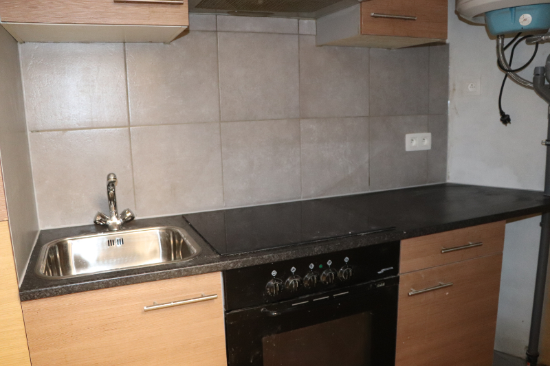 | 3,5 m² | ingerichte keuken op tegelvloer voorzien van: spoeltafel, oven, koelkast, keramische kookplaat en dampkap |