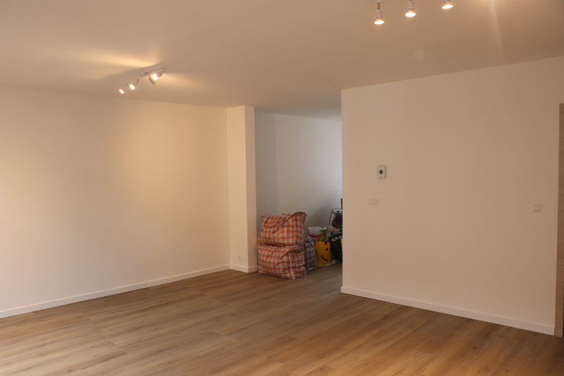Het duplex appartement beschikt over een aparte inkom en bevindt zich op de eerste en tweede verdieping van het gebouw. Dit appartement werd volledig gerenoveerd in 2020 en bestaat uit: 1e verdieping: hal, toilet, woonkamer, keuken, wasplaats, terras; 2e verdieping: hal, badkamer, 2 slaapkamers waarvan één met mezzanine en ingemaakte kasten.