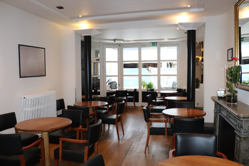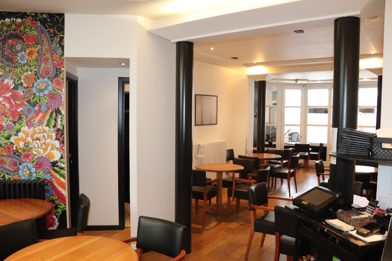 De handelsruimte bestaat uit de effectieve handelsruimte, keuken, berging en toiletten. Daarnaast beschikt deze handelsruimte over een kelder en een ruim terras aan de straatzijde. In 1990 genoot deze ruimte nog over een grondige vernieuwing en recent werden er ook nog zonnepanelen geplaatst.