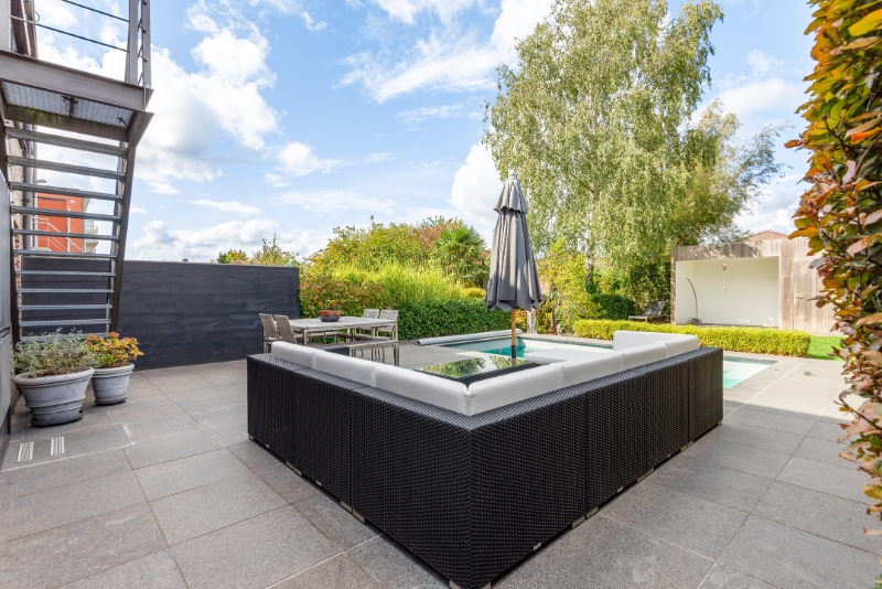 Het bouwjaar is 1991, doch de laatste jaren mooi gerenoveerd. Dit huis werd steeds zeer goed onderhouden en is volledig instapklaar! Zeer goede EPC score: Label B. De indeling is als volgt: -1: een kruipruimte; GLVL: een inkomhall, een wasplaats en een speelkamer/hobbyruimte; 1eV: een traphall, een apart gastentoilet, een woonkamer in L-vorm, een luxueus op maat gemaakte keuken en een veranda met trap naar de tuin; 2eV: een nachthall, een modern en luxueus nieuw ingerichte badkamer met toilet en 3 slaapkamers met losse kasten. De tuin is aangelegd met gras, beplantingen, tuinberging, een 1e ruim terras, een verwarmd zwembad met warmtepomp en een 2e terras.