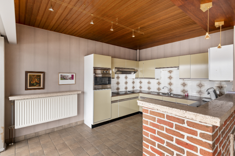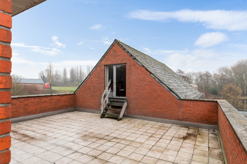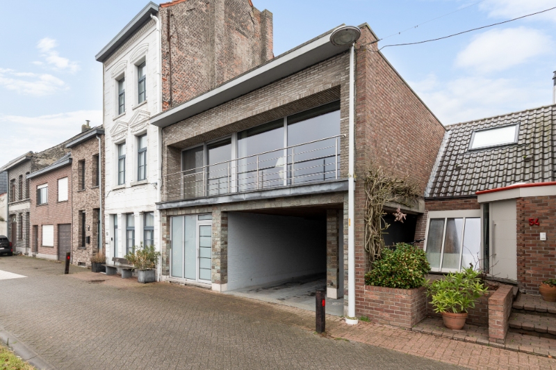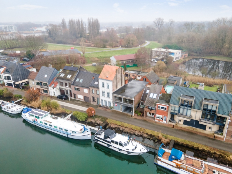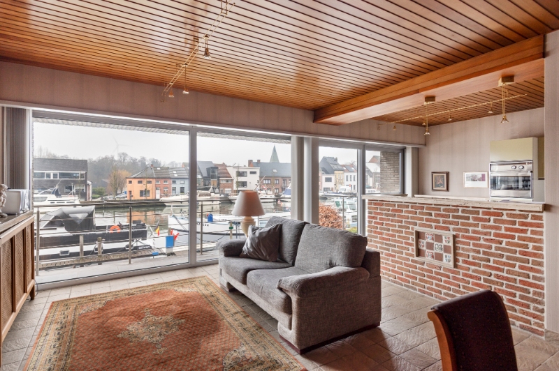 Deze woning werd gebouwd in 1971. Ze werd steeds goed onderhouden, mits de nodige moderniseringen wordt ze een uniek pareltje aan het water! De huidige indeling is als volgt: -1: een volledige gewelfde onderkeldering, voorzien van kantelpoort & uitweg; GLVL: een inkomhall met apart toilet en een vestiaire; 1eV: een traphall, een woonkamer, een klassiek ingerichte keuken, een klassiek ingerichte badkamer met toilet en 3 slaapkamers; 2eV: een ruime zolderruimte boven de de garage/atelier. Verder beschikt dit eigendom over een balkon op de 1eV vooraan en een ruim dakterras op de 1eV achteraan. Mogelijkheid tot omvorming tot loftwoning.