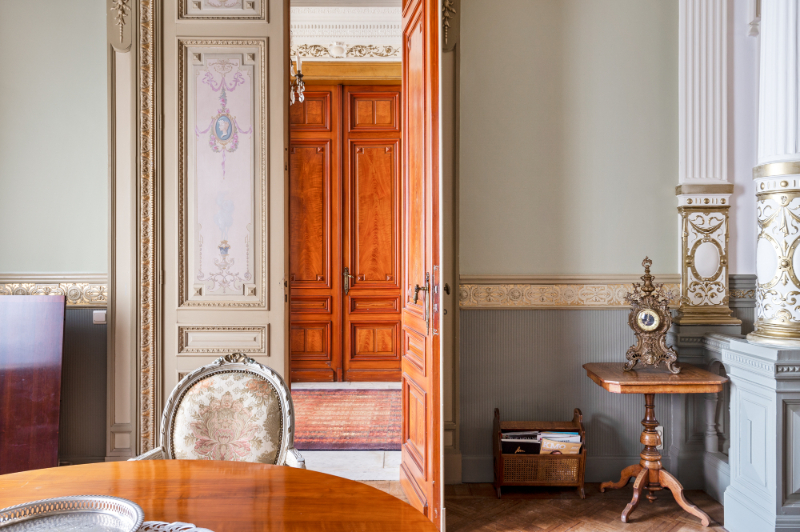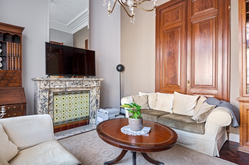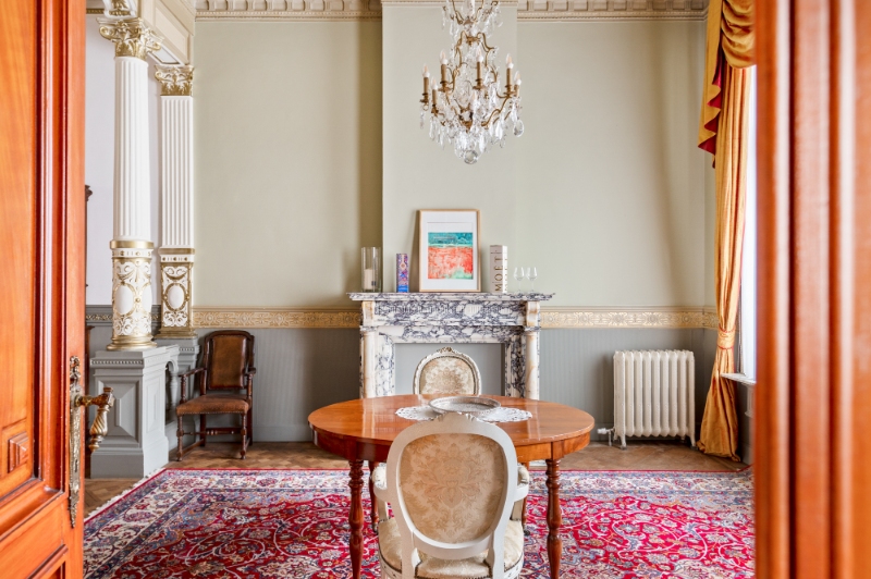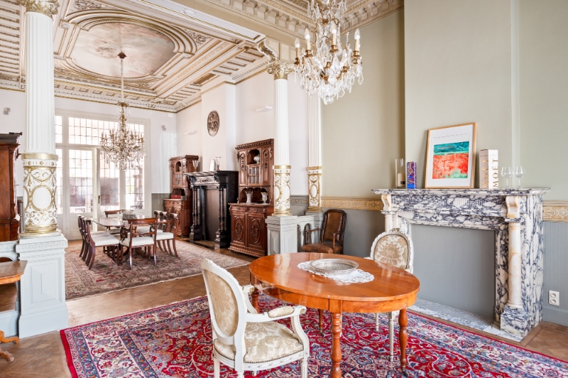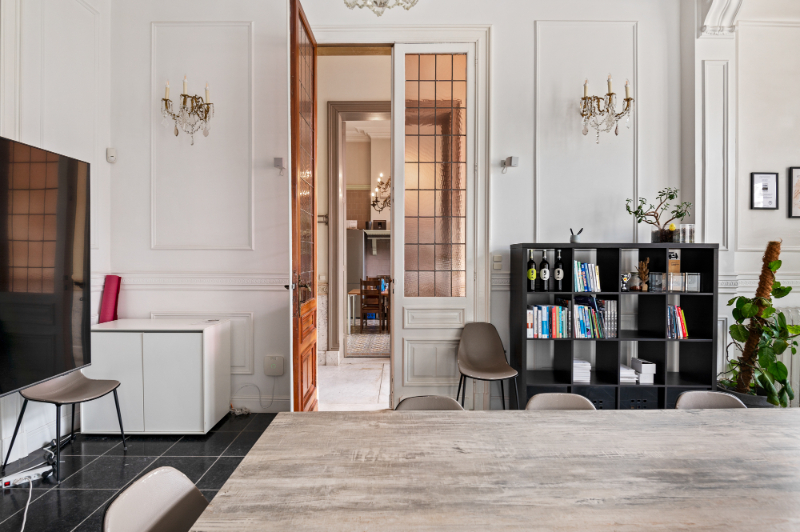 36,9 m² | salon op blauwe hardsteen met lambrisering & plafondhoogte 4m26