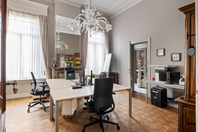 Authentieke gerenoveerde herenwoning bestaande uit: hoofdgebouw VOLLEDIG ONDERKELDERD: wijnkelders, CV- ruimte en 4 bergkelders. GLVL: authentieke inkomhall, woonkamer, salon, TV- kamer, bureau, luxueus ingerichte keuken, apart toilet. 1eV: nachthall, 4 slaapkamers, dressing, hall, terras. 2eV: ZOLDER bestaande uit 6 zolderkamers. Er is een vrijstaande dubbele garage, verwarmd zwembad en volledig ingericht poolhouse met ligruimte, douche, sauna en technische ruimte. De woning beschikt tevens over een prachtig aangelegde en ommuurde parktuin met terras, gazonstrook, oude beuken en platanen met uitweg. Veel privacy in de tuin! Aanpalend is er een conciërgewoonst met aparte inkom bestaande uit: GLVL: inkomhall, woonkamer, ingerichte keuken, wasplaats, apart toilet. 1eV: traphall, nachthall, apart toilet, 2 slaapkamers en een authentieke badkamer. Centraal gelegen en makkelijk bereikbaar op slechts 5 min van de opritten E-19 & A-12 Antwerpen- Brussel. Gunstige oriëntatie: ZW-gerichte tuin met uitweg achteraan naar de Oude Brouwerijstraat. Op wandelafstand van enkele winkels, school en het openbaar vervoer. Voldoende parkeergelegenheid in de straat en/of omgeving. Ideaal als combinatie woonst met praktijk of kantoorruimte. Regenputwater voorzien. Alle plafonds en lambriseringen werden authentiek hersteld. Exclusieve inrichting en topafwerking! Het gebouw is thans in gebruik als kantoorruimte, doch onmiddellijk terug bruikbaar als woonst of combinatie woonst met praktijk of kantoorruimte.